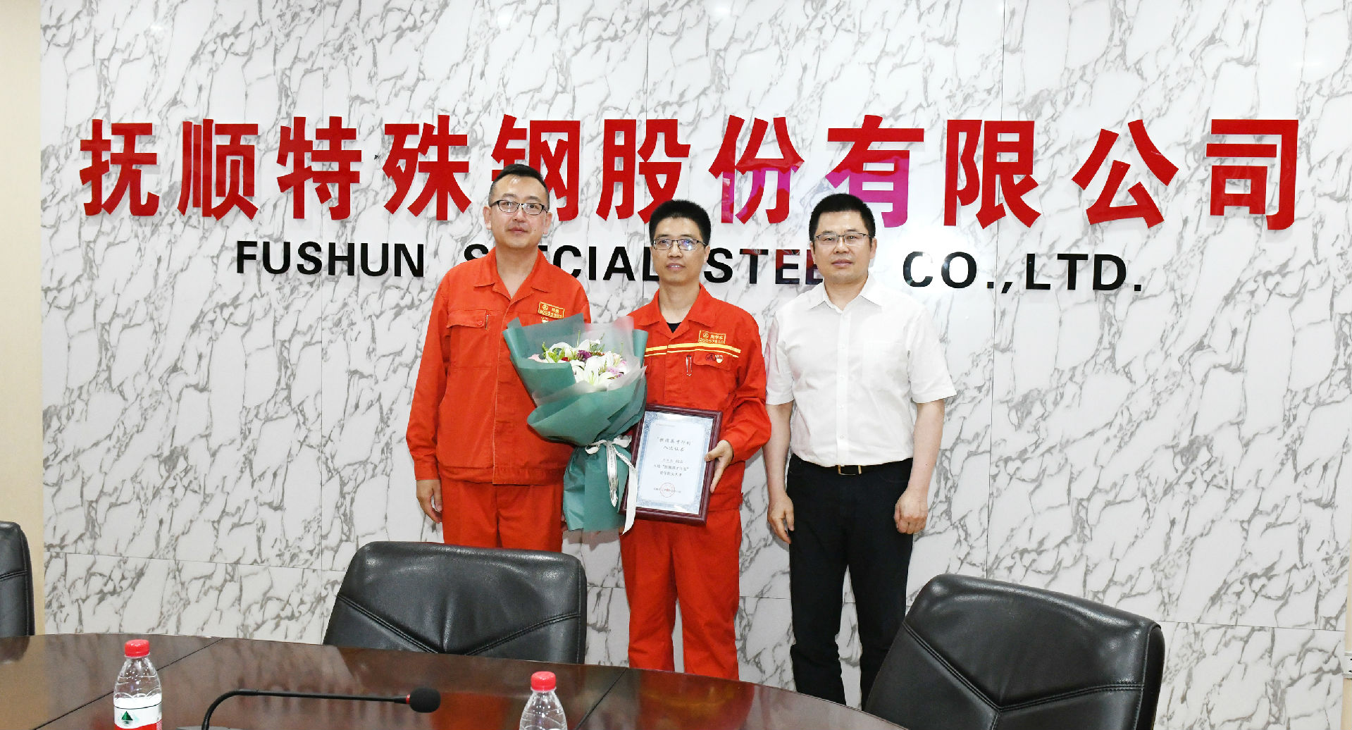 在公司202會議室,客人首先觀看了公司產(chǎn)品宣傳片。隨后,呂長珂代表撫順市委向龐學東頒發(fā)了“撫順英才計劃”入選證書。龐學東憑借出色的工作業(yè)績?nèi)脒x“撫順英才計劃”,根據(jù)“撫順英才計劃”相關要求,龐學東要在3年的時間內(nèi)立項完成“某低成本超高強度鋼新產(chǎn)品研制”的項目攻關工作,期間,他將獲得由撫順市委提供的項目研制經(jīng)費20萬元,用于新產(chǎn)品的研制。