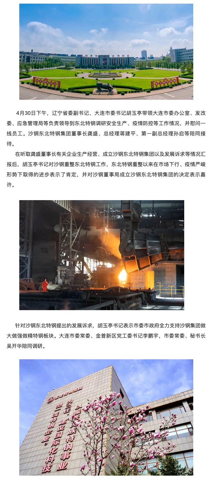 遼寧省委副書記、大連市委書記胡玉亭帶隊到東北特鋼視察調(diào)研